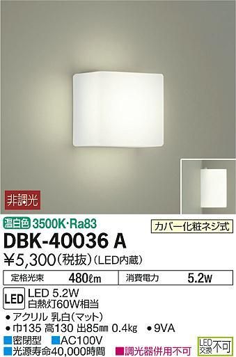 ブラケット DBK-40036A LED 電球色 四角 シンプル